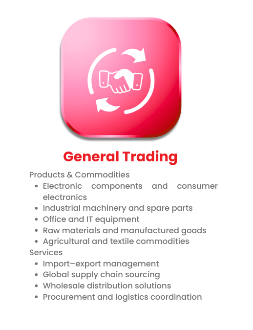 Surplus Asia Trading is a general trading company specializing in the sourcing, procurement, and distribution of a wide range of products across various industries. With a strong network of suppliers and buyers, we aim to bridge the gap between demand and supply, delivering quality products efficiently and reliably.